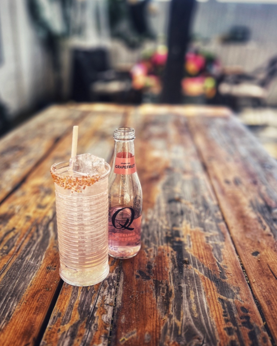 Strain into iced highball glass. Top with Q Grapefruit Soda and serve with remaining bottle.