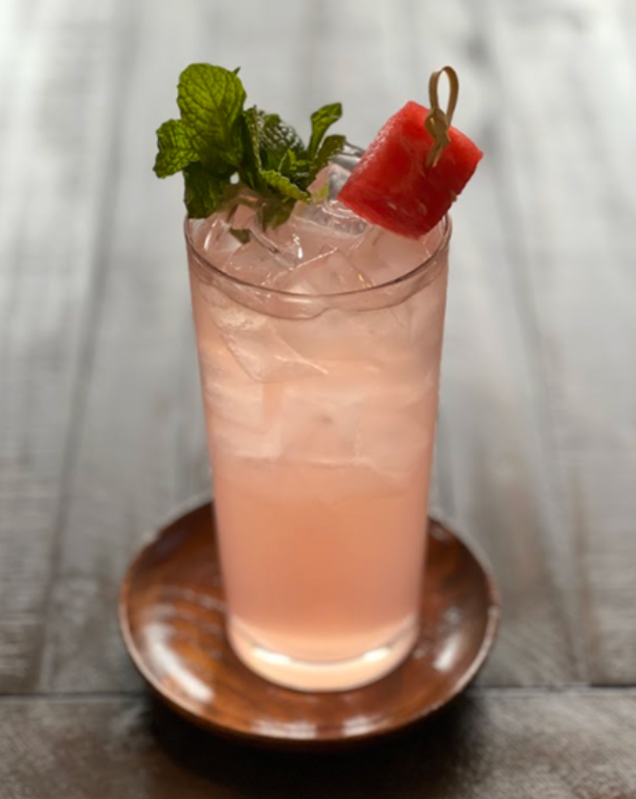 Garnish: Watemelon cube and Mint Sprig